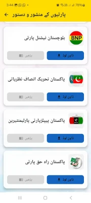 الیکشن کمیشن آف پاکستان میں باضابطہ طور پر رجسٹرڈ تمام سیاسی جماعتیں اپنے قیام، سرگرمیوں اور مقاصد کی تفصیلی وضاحت آئین کی صورت میں پیش کرنے کی پابند ہیں۔ یہ دستاویزا ت ان کے نظریات اور عملی طریقوں کا عکاس ہوتے ہیں۔ جہاں یہ پارٹیاں اپنا منشور اور آئین عوام کے سامنے رکھتی ہیں، وہیں ان تک رسائی اکثر پیچیدہ ہوسکتی ہے۔ ہماری ایپ اس مشکل کو ختم کرتے ہوئے، آپ کو پاکستان بھر کی سینکڑوں سیاسی پارٹیوں کے مصدقہ آئین اور دستور کو ایک ہی مرکزی مقام پر آسانی سے دیکھنے اور پڑھنے کی سہولت فراہم کرتی ہے۔