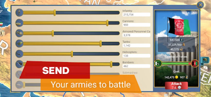 عالمی سطح پر سیاسی چالوں میں مشغول ہوں، سفارت خانے قائم کریں، پابندیاں لگائیں، عدم جارحیت کے معاہدوں اور دفاعی اتحادوں پر دستخط کریں، اور اقوام متحدہ میں قراردادیں پیش کر کے بین الاقوامی معاملات کو متاثر کریں۔ میدان جنگ میں، اپنی فوج کو پیدل دستوں، توپ خانے، بکتر بند گاڑیوں، ٹینکوں، ہیلی کاپٹروں، بمباروں اور بحری جہازوں کے ساتھ لاجواب بنائیں۔ ممالک پر حملہ کریں، انہیں فتح کریں، بغاوتیں منظم کریں، جاسوس اور تخریب کار بھیجیں، جوہری جنگیں شروع کریں، اور منسلک علاقوں کا انتظام کریں۔ اندرونی محاذ پر، نئے قوانین نافذ کریں، اپنی نظریات بدلیں، اور متنوع مذاہب جیسے پروٹسٹنٹ ازم، کیتھولک ازم، یہودیت، اسلام، ہندو مت، بدھ مت، شنتو ازم میں سے انتخاب کریں۔ قدامت پسند، لبرل، سوشلسٹ، امن پسند، قوم پرست یا انتشار پسند – آج آپ کا ملک کیا ہوگا؟